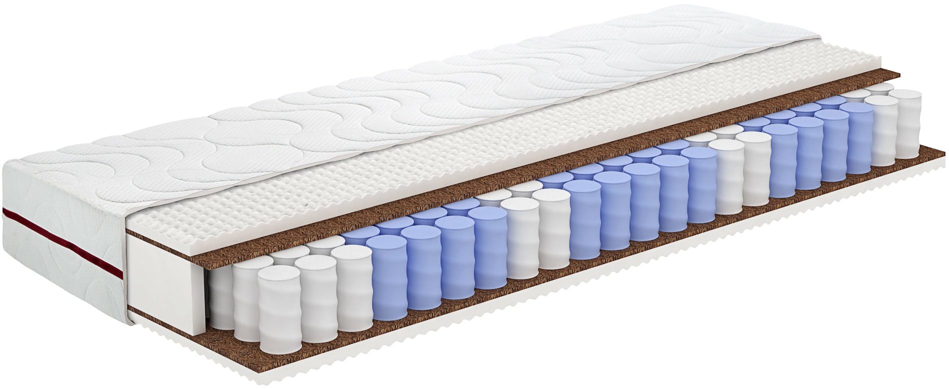 Данная модификация формируется на блоке, состоящем из самостоятельных пружин, покрытых кокосовой койрой. Массажный пружинный матрас "Луна" отличается бугристой текстурой, формирующей во время сна эффект микро-массажа.