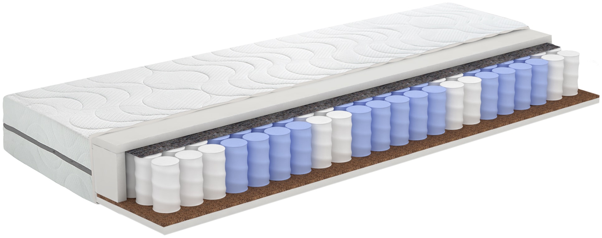 Комфортный трикотаж, стеганный на синтепоновой основе. Матрас изготавливался с использованием кокосового волокна. Пружинный блок отличается повышенной надежностью. Матрас Прада рассчитан для нагрузки максимальным весом – 100 кг на одно спальное место. Что касается жесткости, то одна сторона матраса мягкая, другая – среднежёсткая.