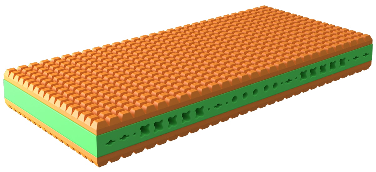 Основа матраса - трехслойная, перфорированная на 7 зон жесткости.