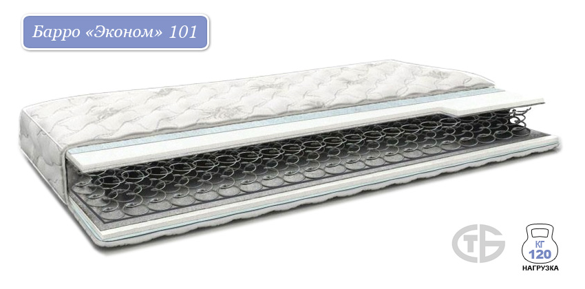 Ортопедический матрас Барро Эконом 101, толщина матраца - 18 см. Степень жесткости сторон: среднежесткий / среднежесткий.